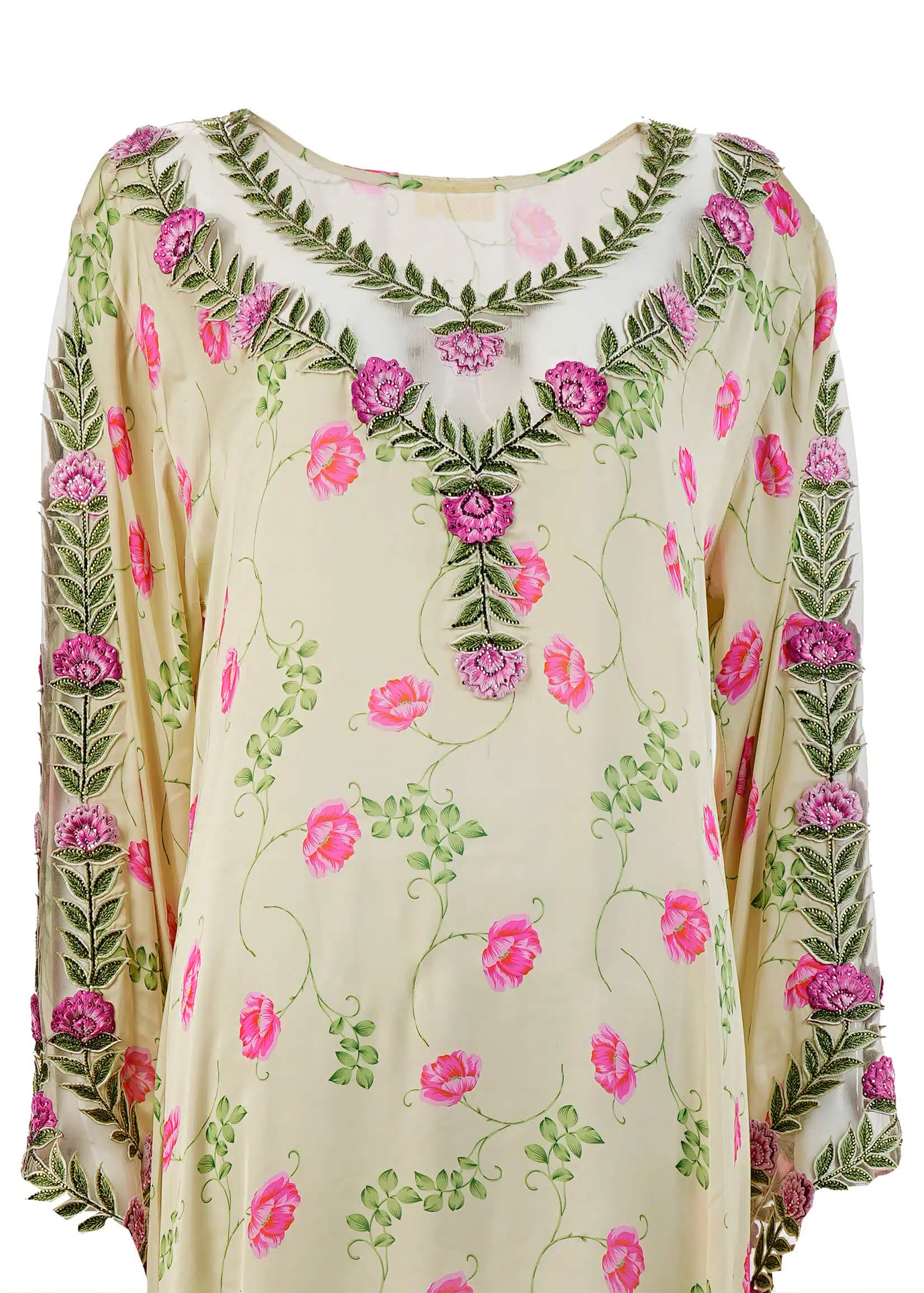 Care | Dry clean only to preserve the fabric?s texture and embroidery. Iron at low heat. |