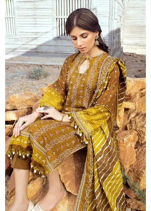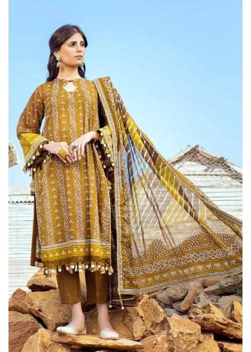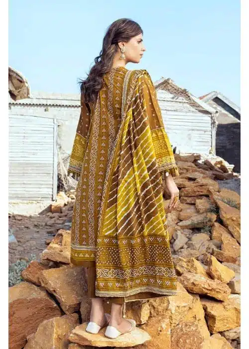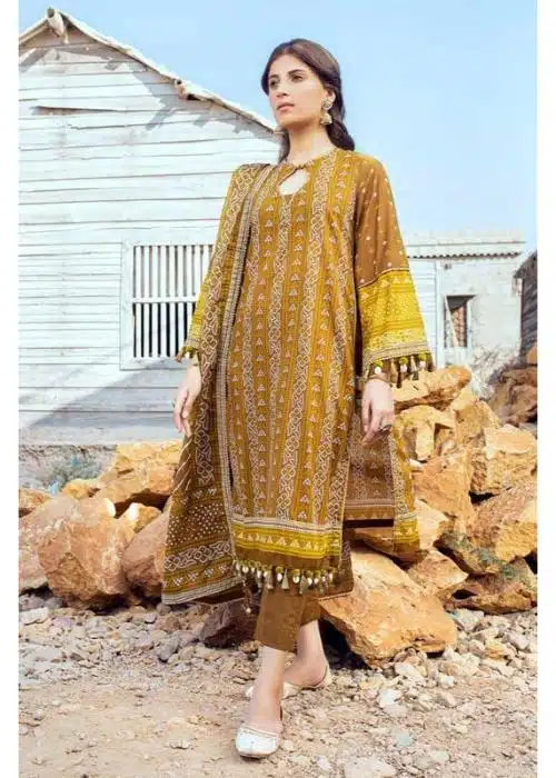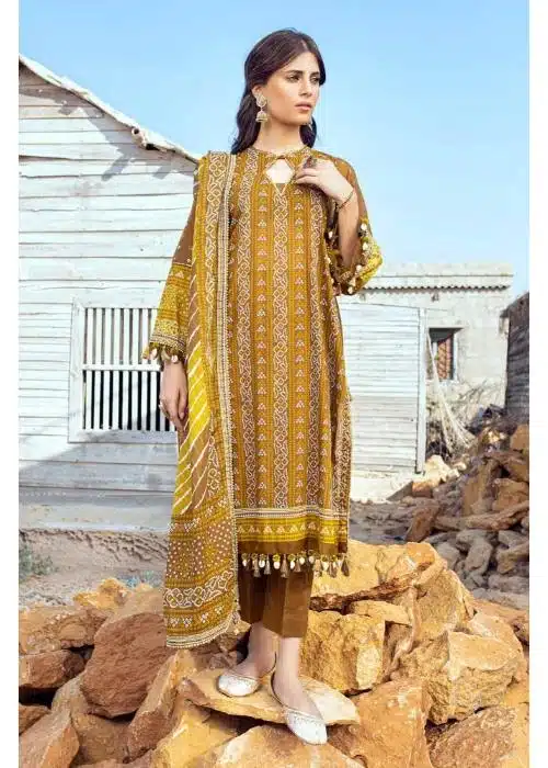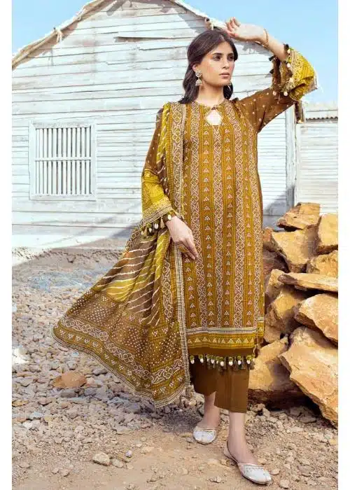 - Work – Printed lawn shirt, printed lawn dupatta, and plain trouser.