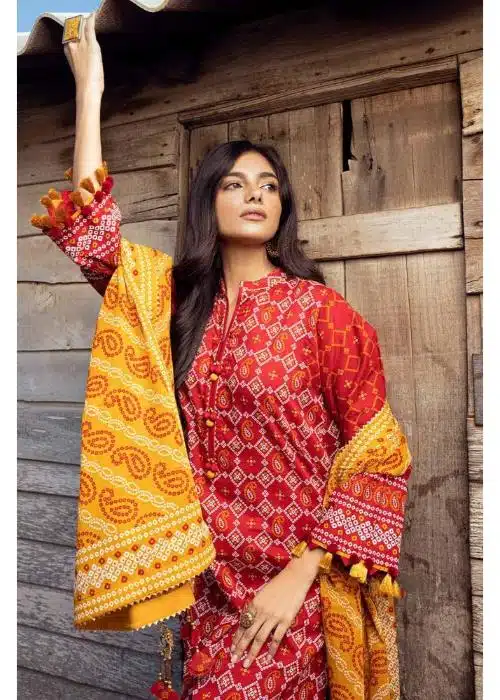 • Work – Printed lawn shirt; printed lawn dupatta; plain trouser.