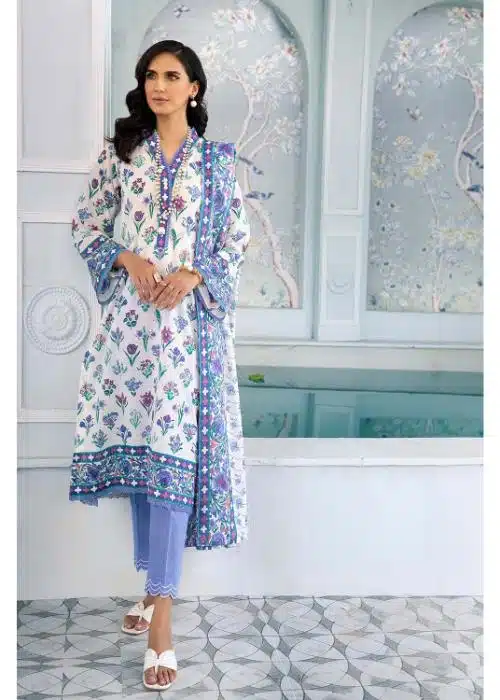 - Work – Digital multi-color printed kurti, lawn dupatta with digital print, dyed trouser.