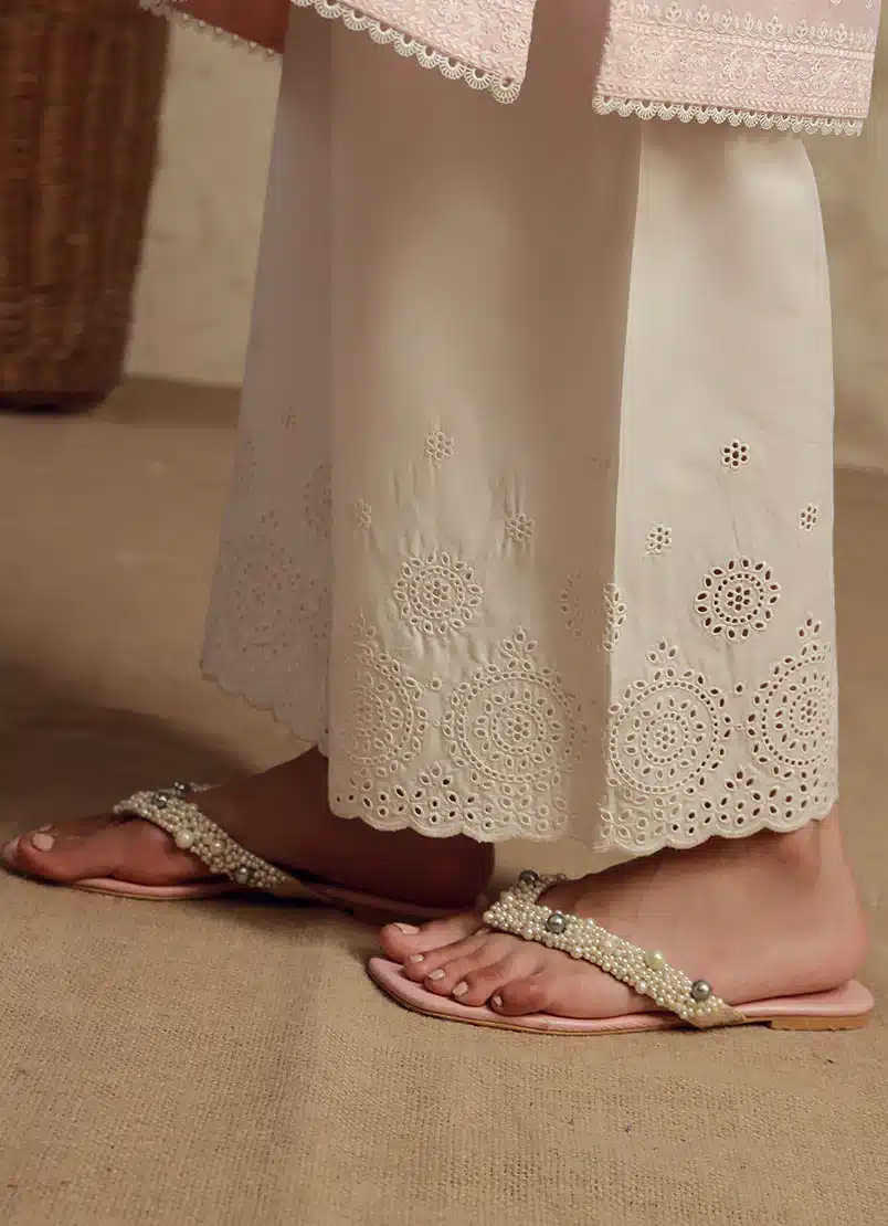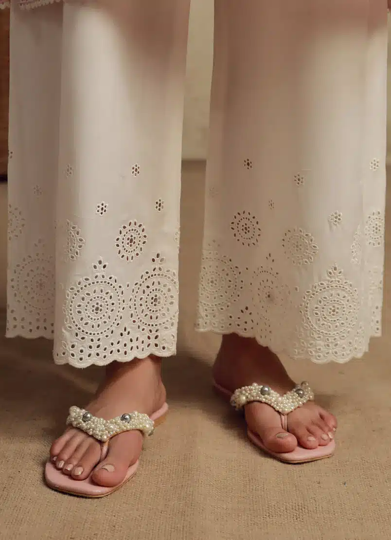 Product Description | The White Embroidered Izaar. Straight fit & scallop cut embroidery. |