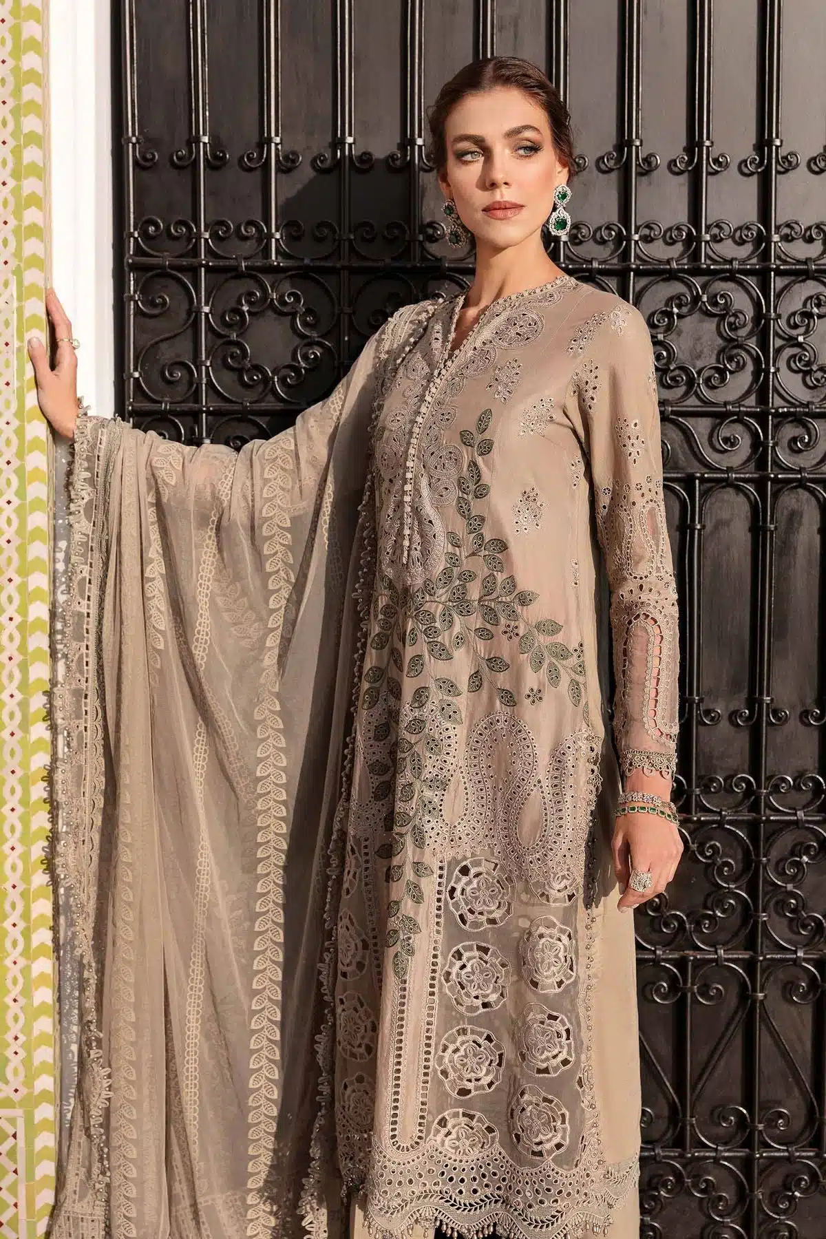 Maria.b | Luxury Lawn | Cofee | Unstitched | Embroidered Net Suit | 3 Piece