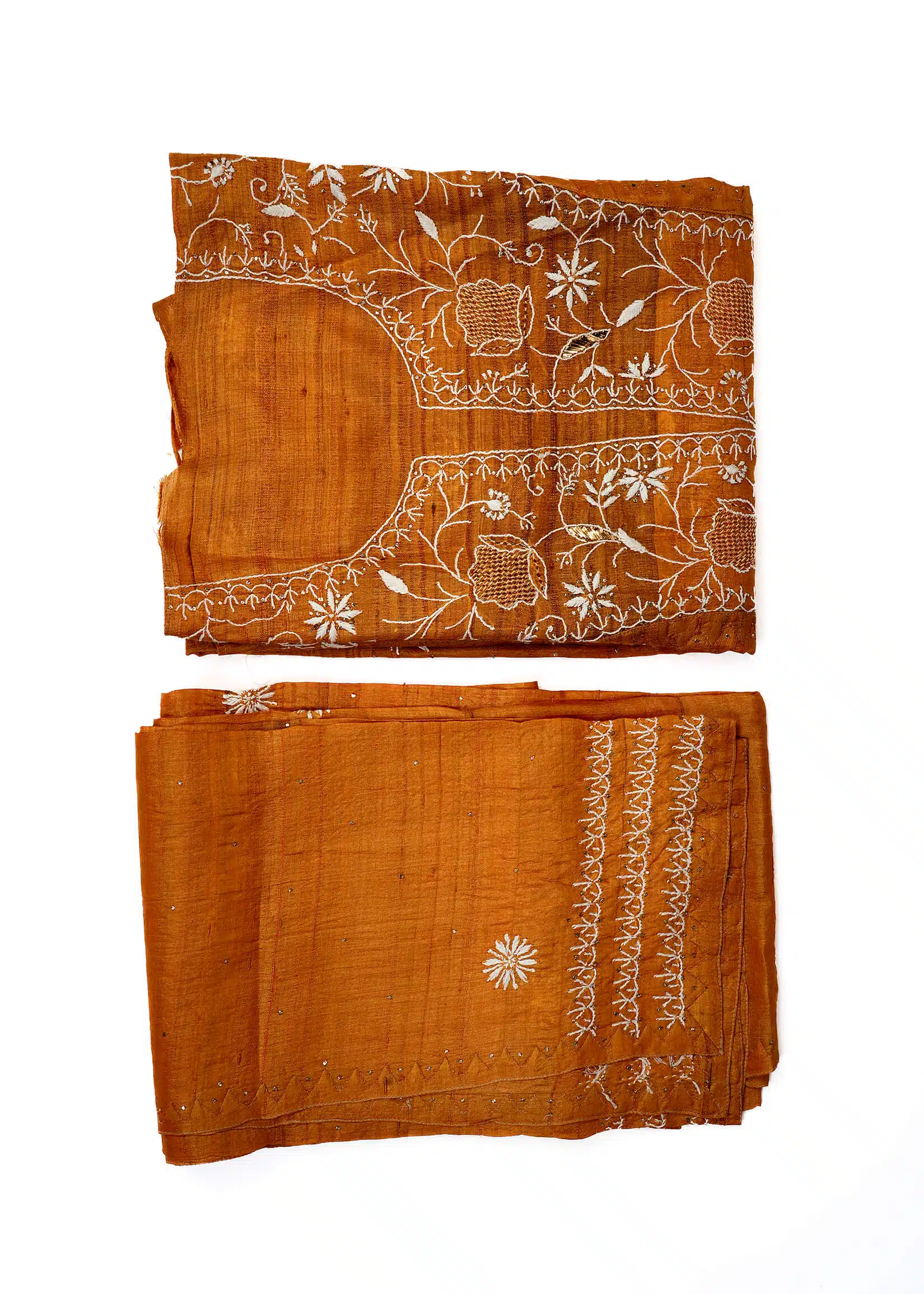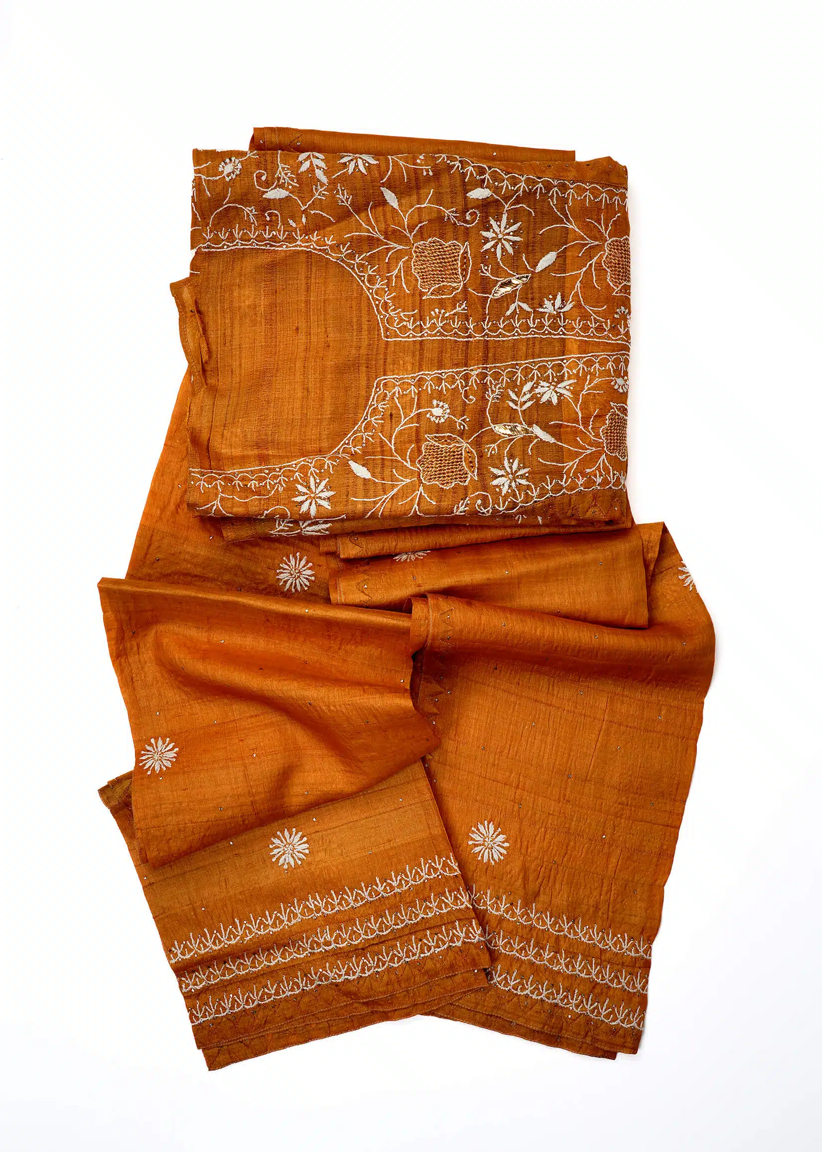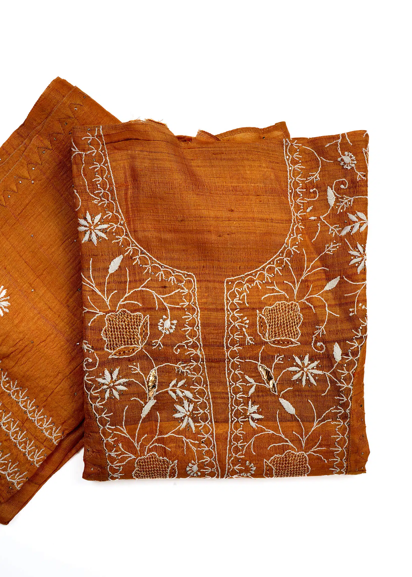 - Dupatta – Tussar silk with two-side borders and full boota designs throughout.